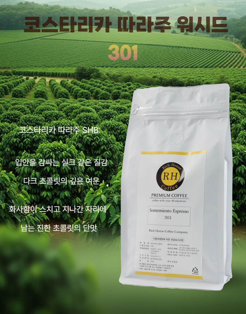 리치하우스커피 베스트 블랜딩 #301 500g 코스타리카,예가외