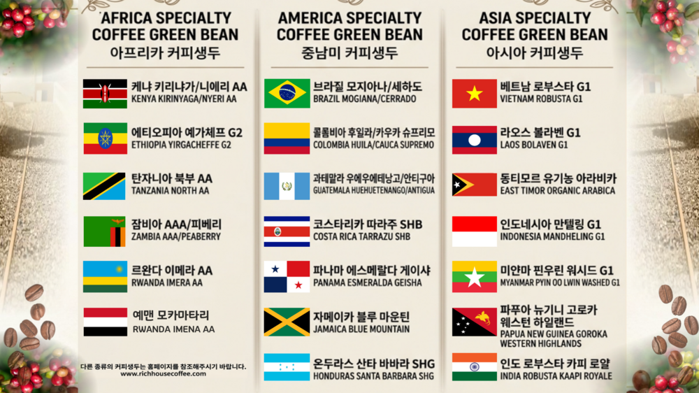 저희 리치하우스는 고품질 생두의 안정적인 수급과 최상의 커피를 유지하기 위해 부득이하게 전 품목의 공급 가격을